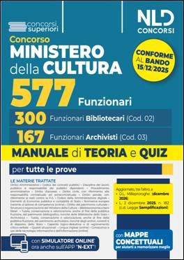 Concorso Ministero della Cultura 577 posti - 300 Funzionari Bibliotecari e 167 Funzionari Archivisti. Manuale di Teoria e Quiz